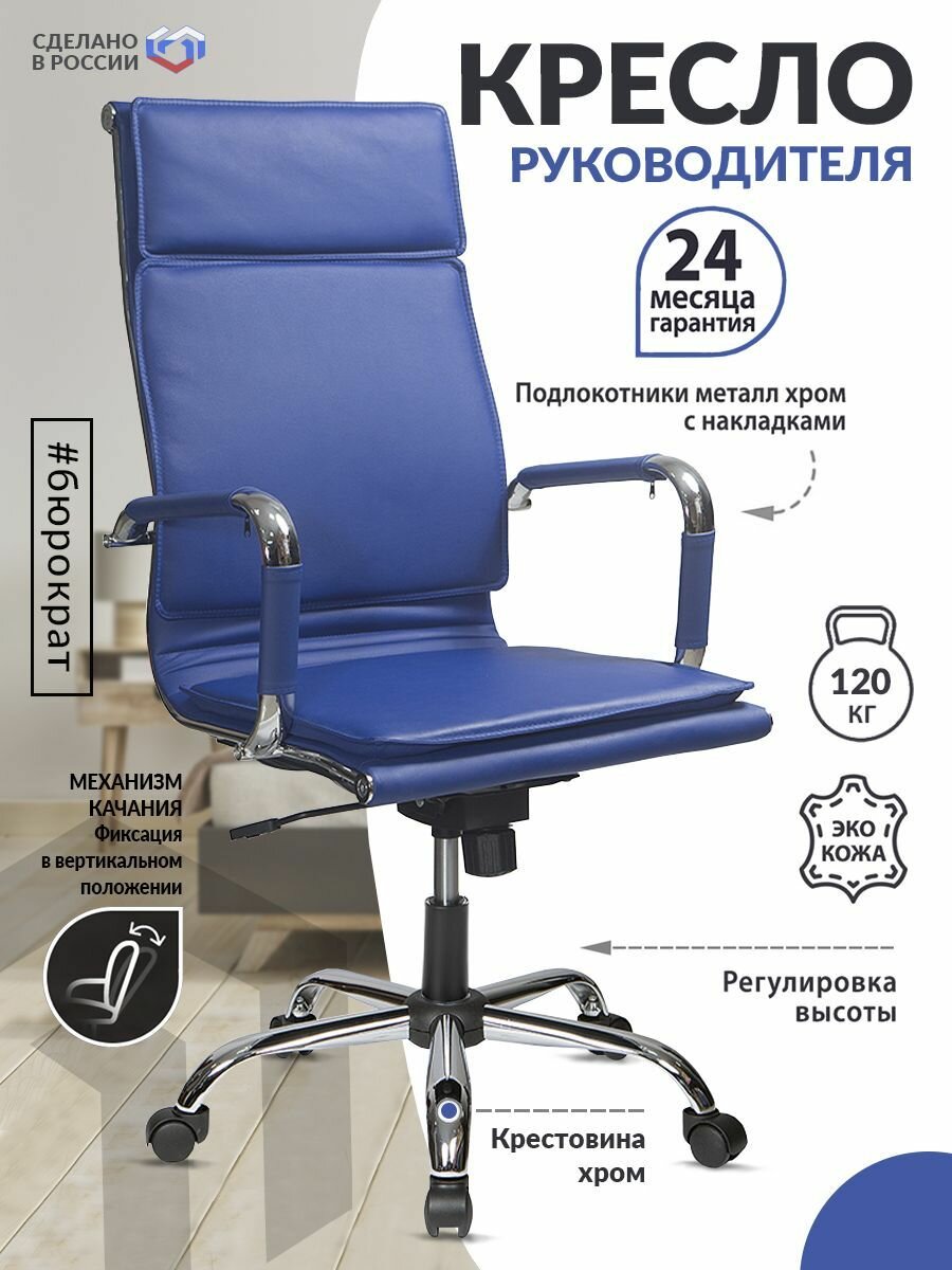 Кресло руководителя Бюрократ CH-993 синий эко.кожа крестовина металл хром