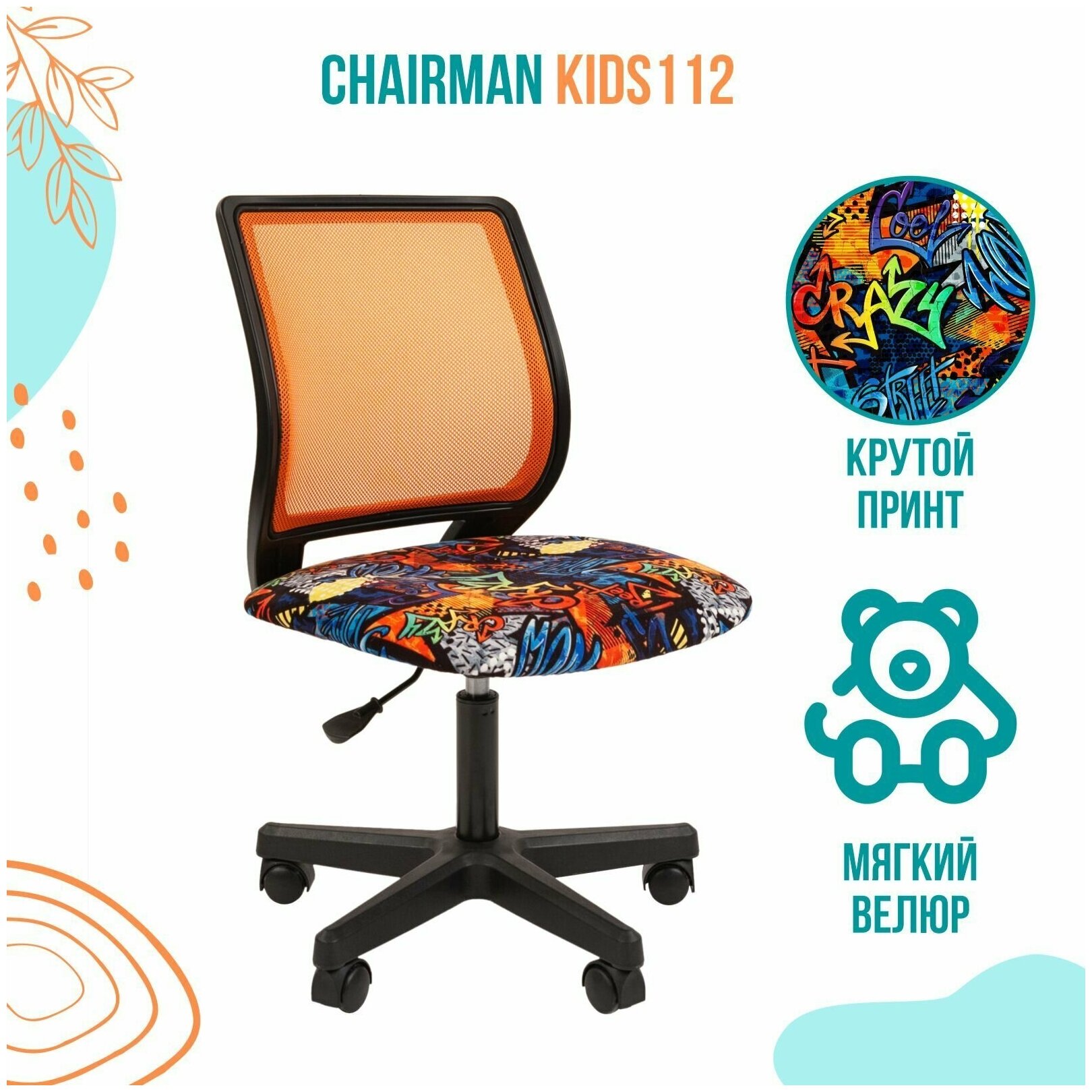 Детское компьютерное кресло CHAIRMAN KIDS 109, велюр, принт CRAZY