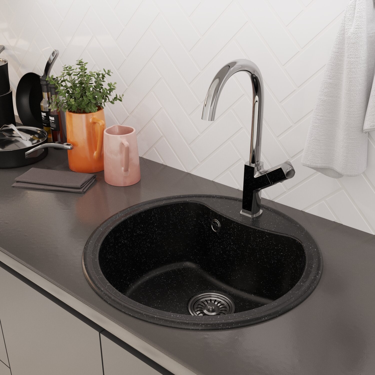 Кухонная мойка Мойкa ML-GM09 круглая, черная (308), 510 мм (глуб. чаши 190)