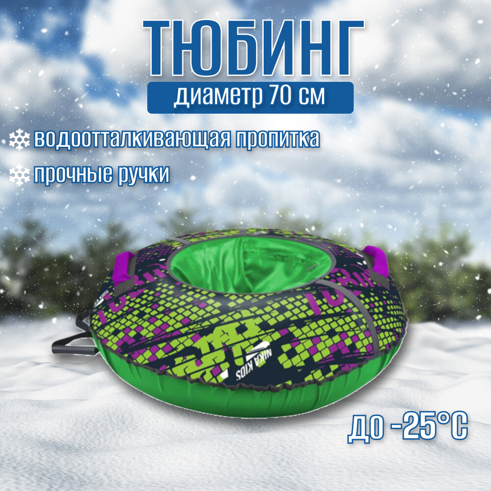 Санки-ватрушка Nika, 70 см, 70 кг, с буксировочным тросом, с ручками, принт, светоотраж элементы, ТБ2К-70/22