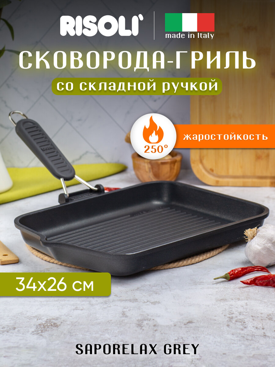 Сковородка Сковорода-гриль Risoli SAPORELAX GREY 36x26см со складной ручкой