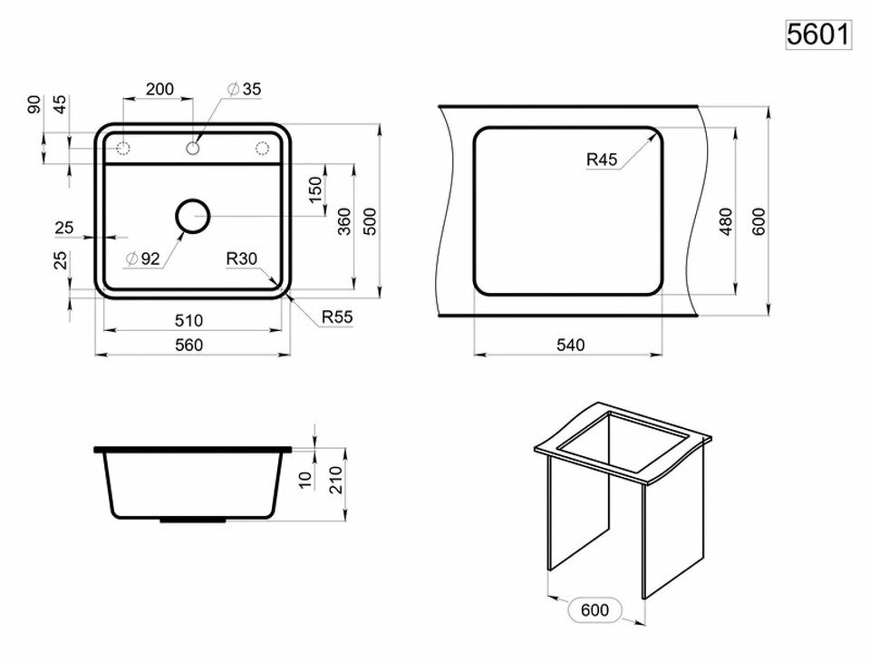 Кухонная мойка Granula Standart ST-5601 черный 6 283 ₽ Подробнее