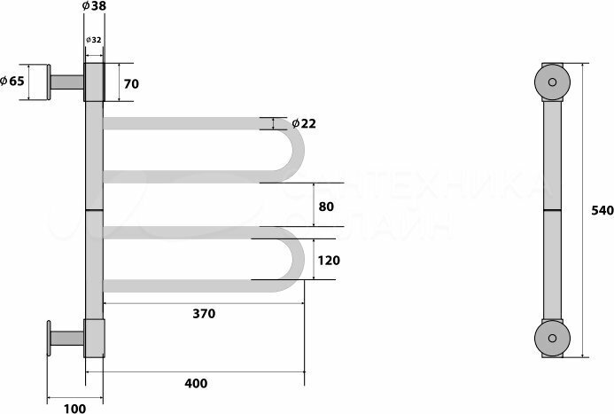 Электрический полотенцесушитель Energy U - G4K поворотный цвет хром