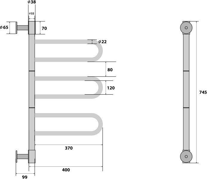 Электрический полотенцесушитель Energy U - G3K поворотный цвет хром, скрытое/наружное подключение