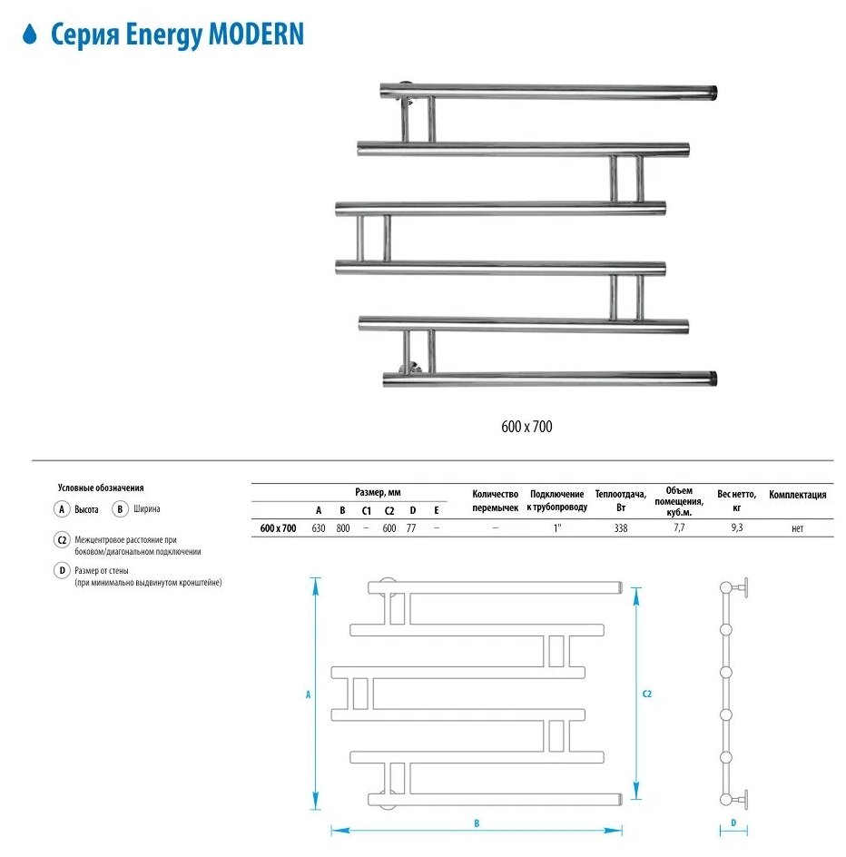 Водяной полотенцесушитель Energy Modern 600 700 13 180 ₽ Подробнее