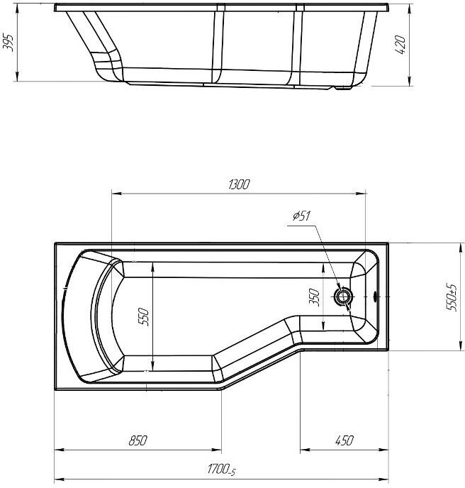 Ванна акриловая 150x75 см Асимметричная Правая 01кон1575п