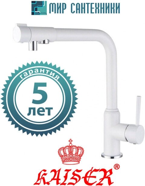 Смеситель кран для кухни и кухонной мойки с фильтром для питьевой воды Kaiser Teka белый 13044-10