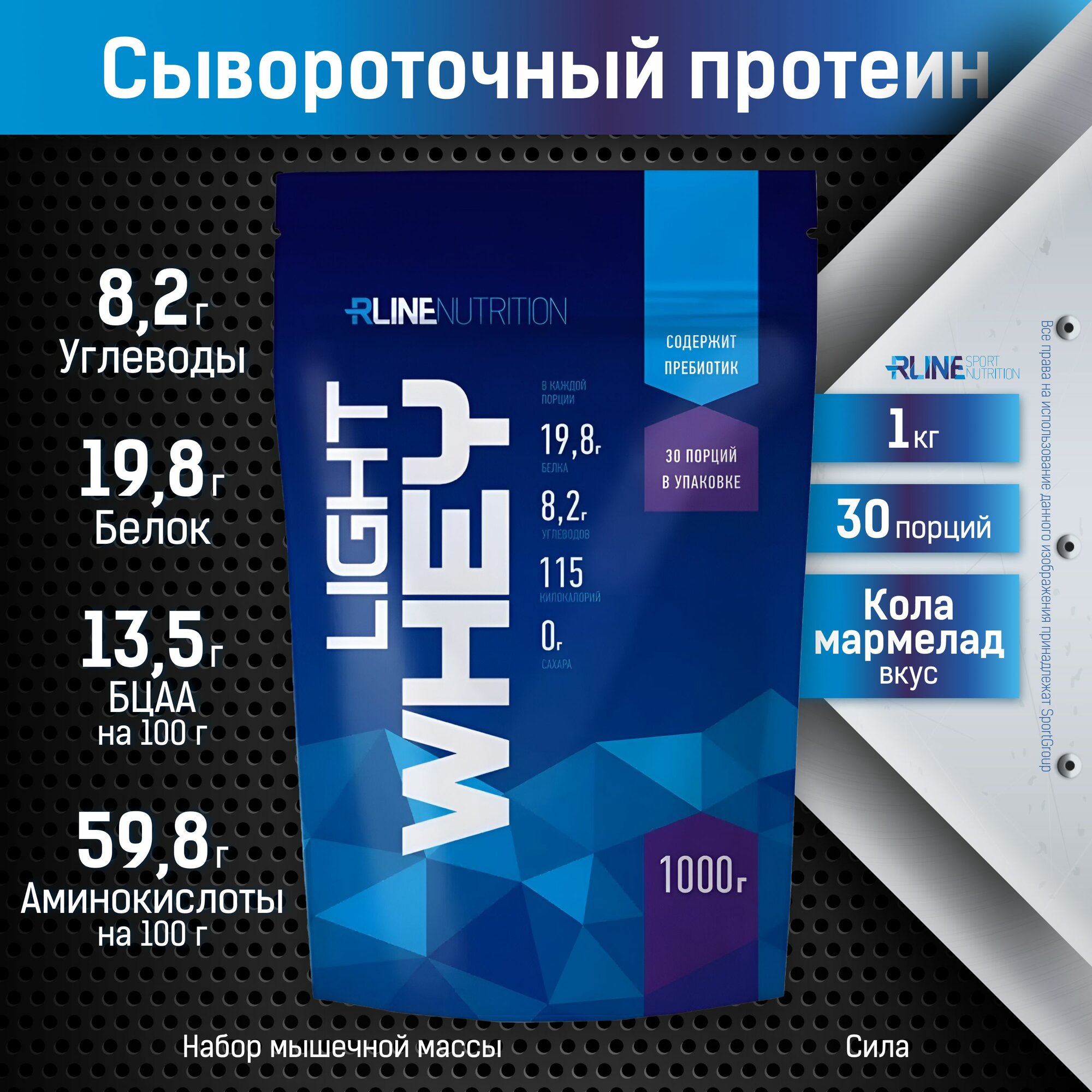 Протеин сывороточный RLINE Light Whey, Кола-мармелад, 1000 гр