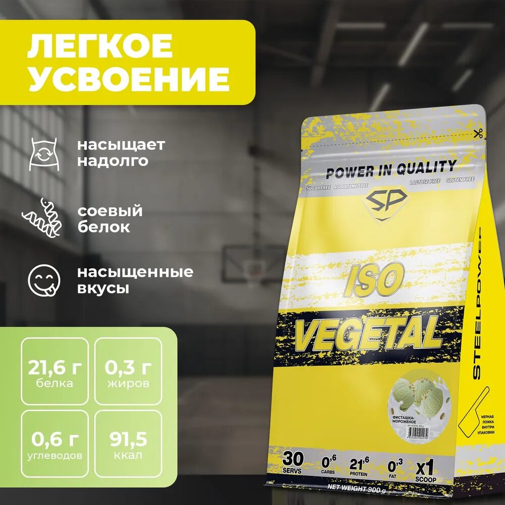 Протеины Соевый протеин изолят STEEL POWER ISO Vegetal, Фисташковое мороженное, 900 г (30 порций)