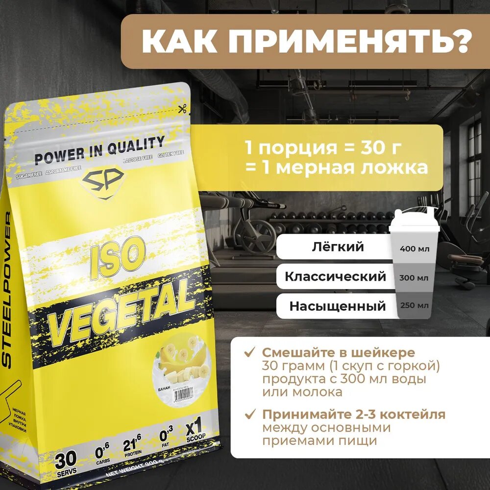 STEEL POWER ISO Vegetal 900 г (30 порций) (Банан)