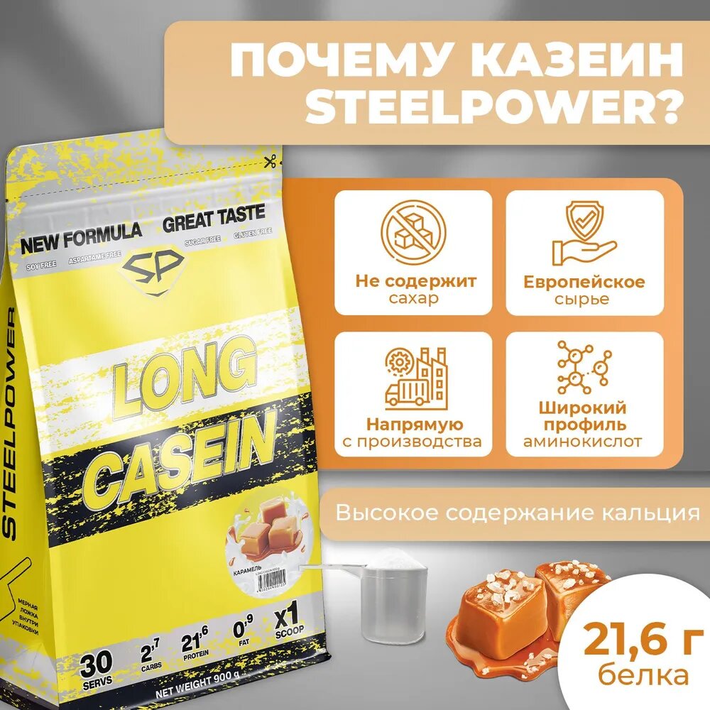 STEEL POWER Long Casein 900 г (30 порций) (Сливочная карамель)