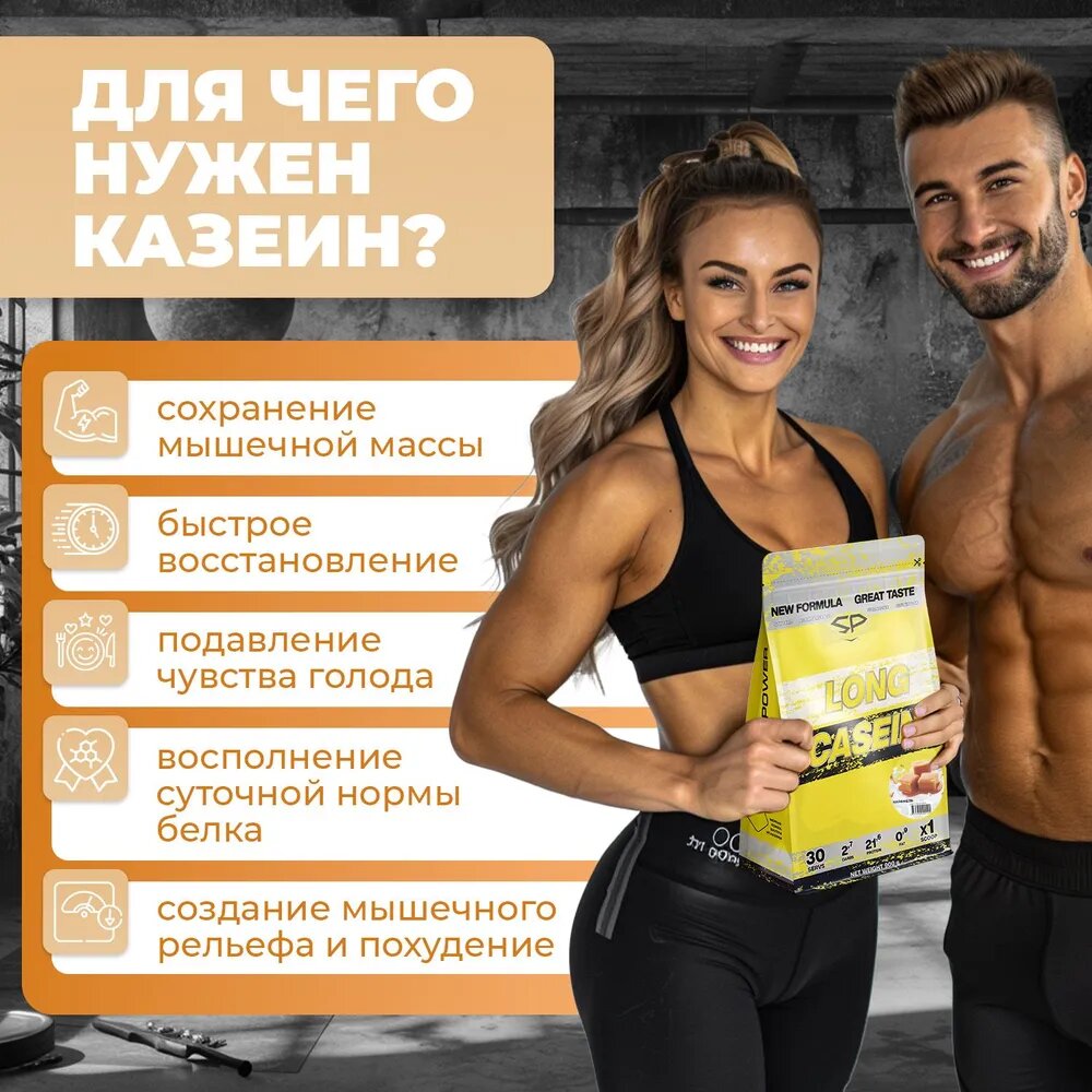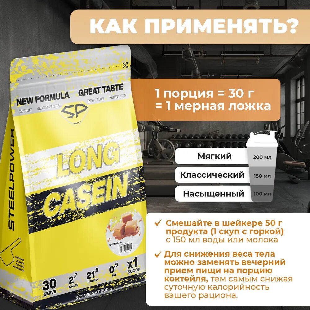 Казеин LONG CASEIN, 900 гр, вкус «Сливочная карамель», STEELPOWER