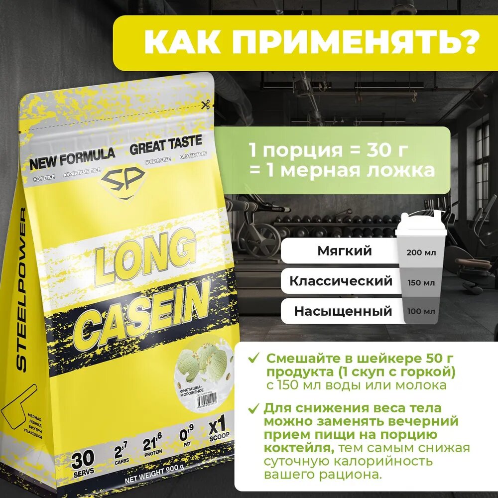 Протеин Протеин казеиновый STEEL POWER Long Casein, Фисташковое мороженое, 900 г (30 порций)