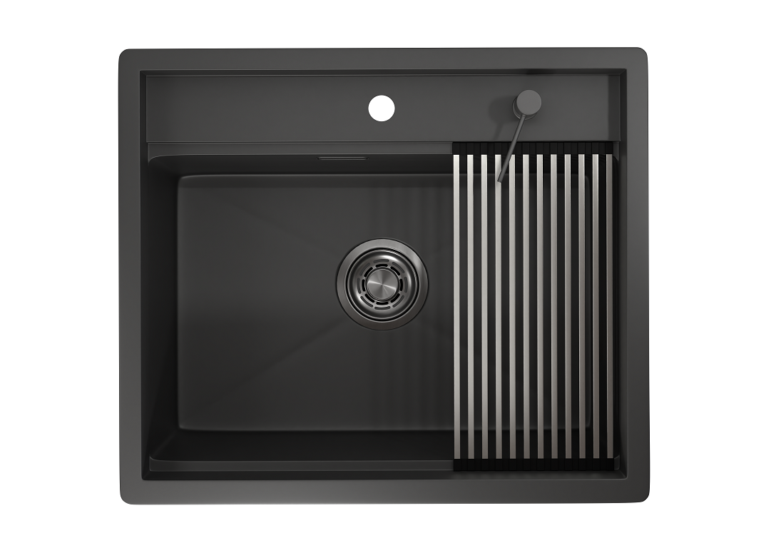 Кухонная мойка KS-6051, черный матовый, стальная кухонная мойка KITCHEN SPACE