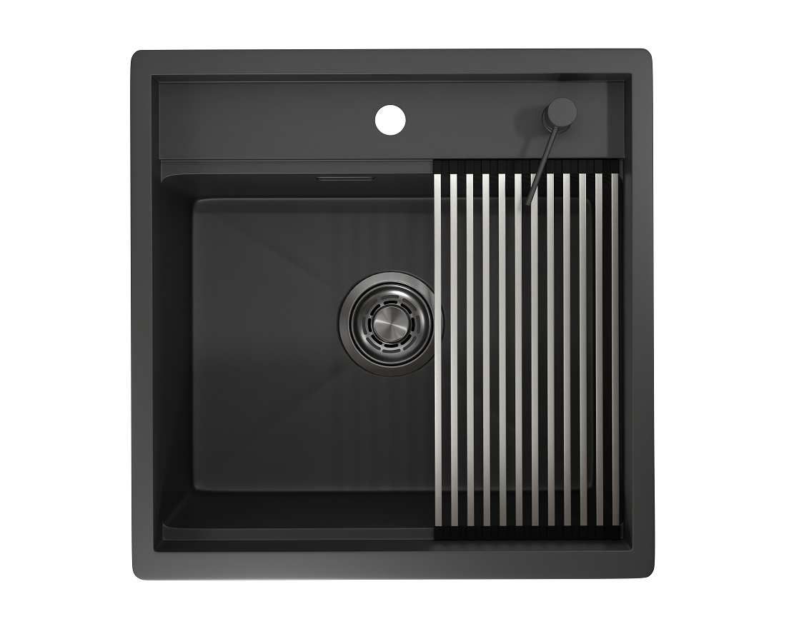 Кухонная мойка KS-5051, черный матовый, стальная кухонная мойка KITCHEN SPACE