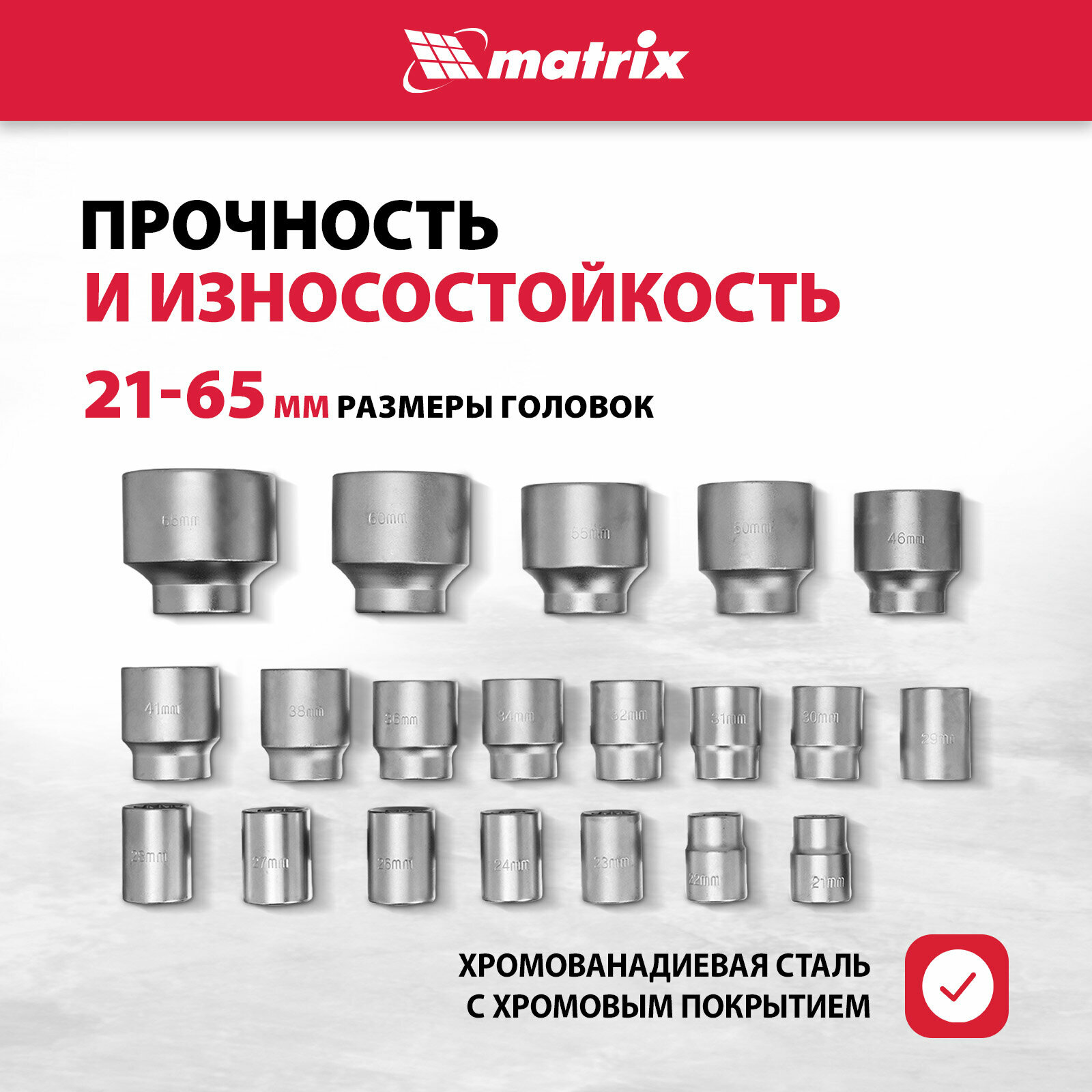 Набор инструментов Набор торцевых головок 3/4" 1", головки 21 х 65 мм, 26 предметов, в пласт. боксе Matrix