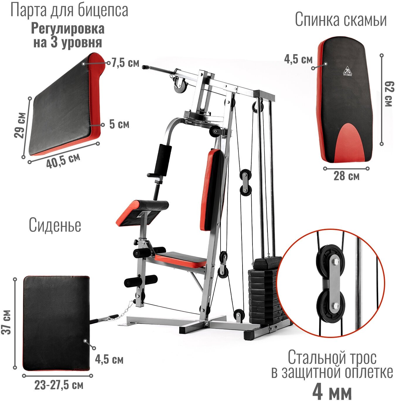 Лучшие цены. Многофункциональный тренажер с встроенным весовым стеком. Позволяет выполнять комплекс упражнений на различные группы мышц. Удобные сиденье и спинка имеют фиксированное положение для комфортного выполнения силовых упражнений. Ролики на подшипниках обеспечивают плавное движение. Стальной трос в защитной оплетке так же гарантирует безопасность при выполнении упражнений. Весовой стек имеет общую массу 45 кг. Дополнительные аксессуары в комплекте помогают сделать упражнения более разнообразными. Магазины в вашем городе.