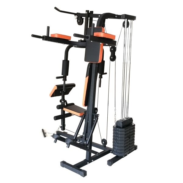 Лучшие цены. Многофункциональный тренажер с встроенным весовым стеком. Позволяет выполнять комплекс упражнений на различные группы мышц. Дополнительно тренажер имеет брусья для отжимания и степпер с гидроцилиндрами. Легкая и удобная система регулировки сиденья и спинки позволяет удобно настроить тренажер для комфортного выполнения упражнения. Ролики на подшипниках обеспечивают плавное движение. Стальной трос в защитной оплетке так же гарантирует безопасность при выполнении упражнений. Магазины в вашем городе.