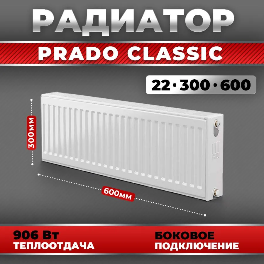 Радиатор отопления Радиатор PRADO Classic 22х300х600 (906Вт) панельный, сталь, 1 секция 00000000899