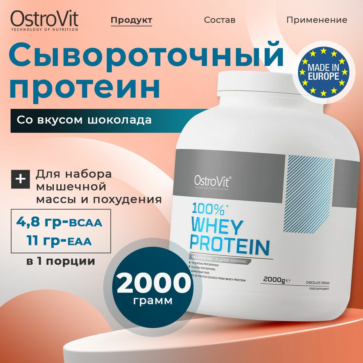 Протеин Протеин сывороточный, OstroVit 100% Whey Protein, порошок 2000 гр со вкусом Шоколада