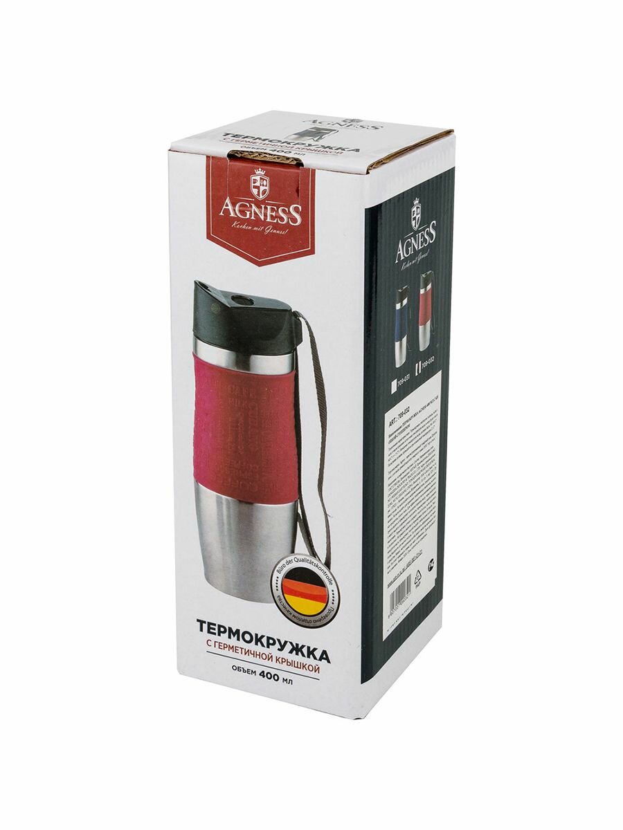 Термокружка agness 400 мл с кнопкой-стоппером
