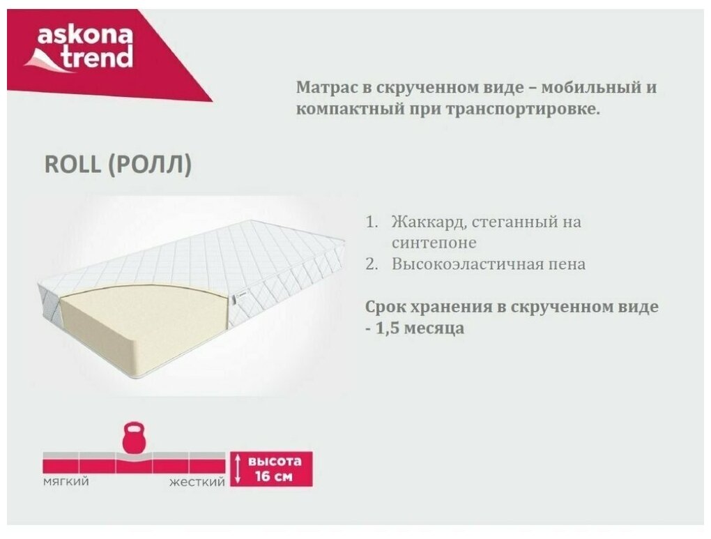 Матрас Trend Roll, 120x200, высота 16, анатомический