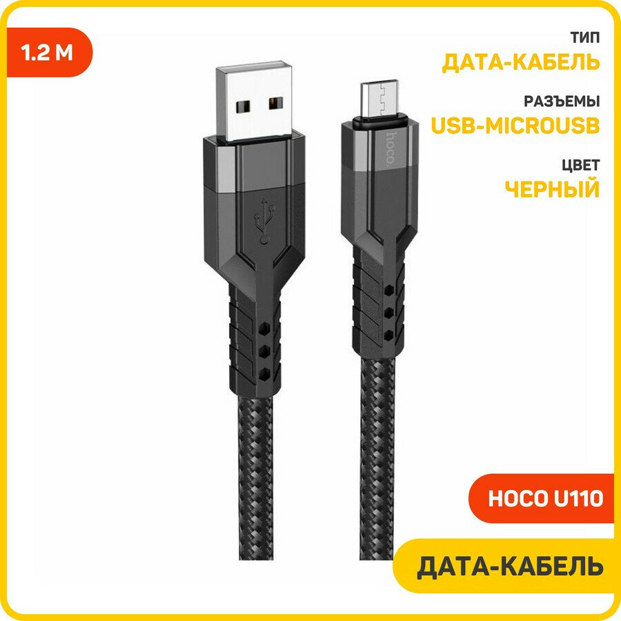 Зарядки для гаджетов Кабель USB 2.4A (microUSB) 1.2м HOCO U110 Черный