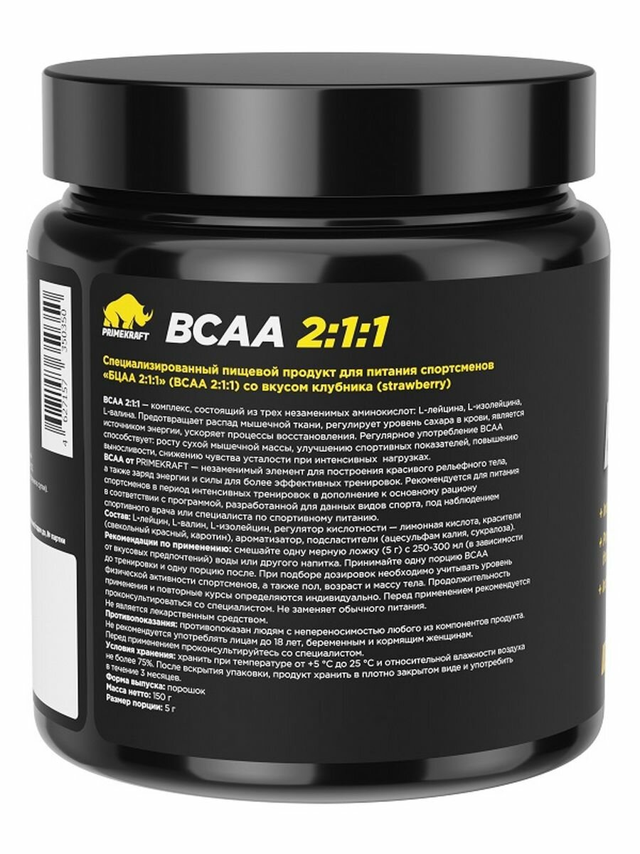 Prime Kraft BCAA - Аминокислотный комплекс 2:1:1 с клубничным вкусом, 150 г