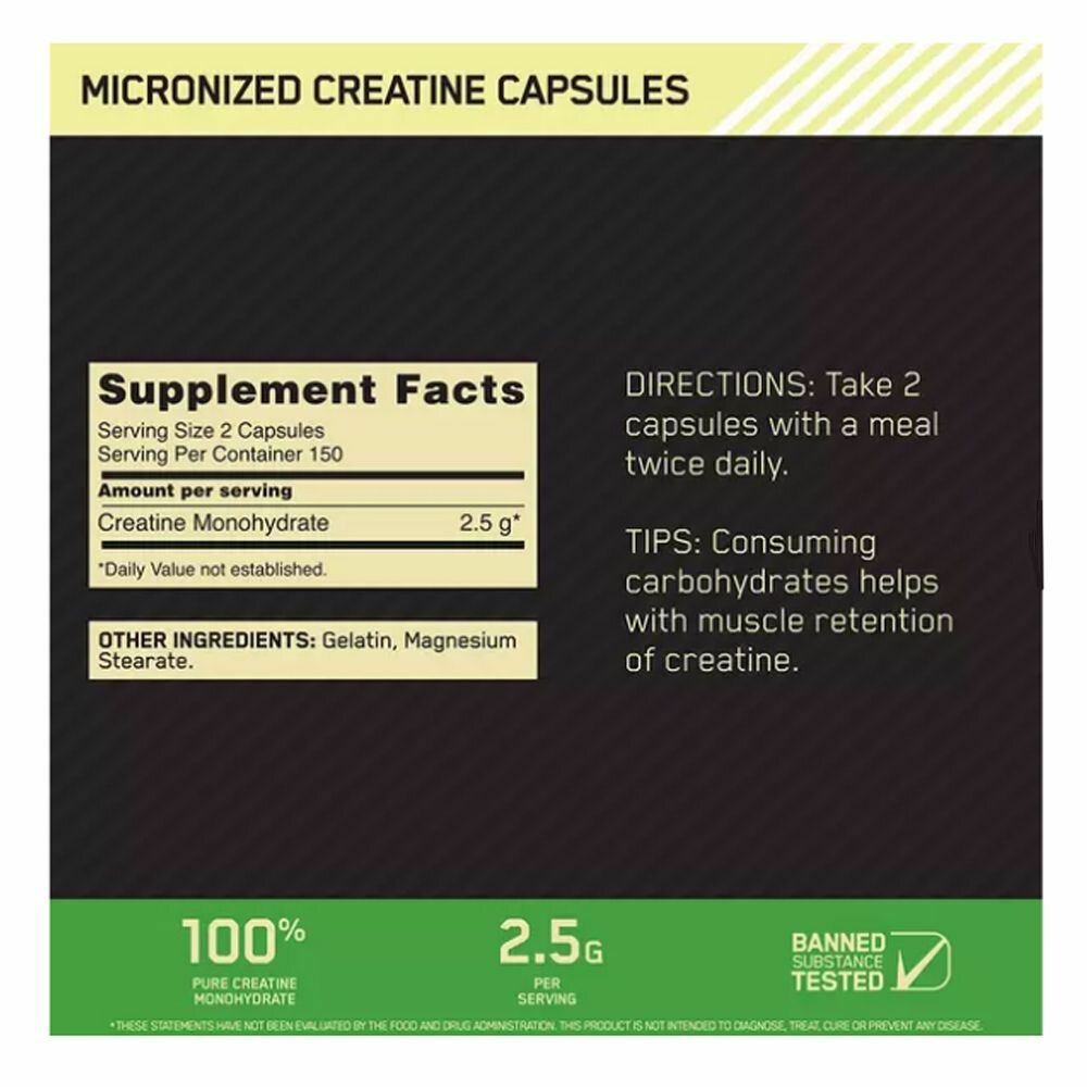 Микронизированный креатин OPTIMUM NUTRITION Micronized Creatine Capsules 300 капсул