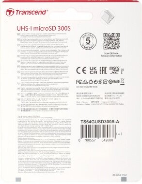 Карта памяти Transcend microSD 300S Class 10 UHS-I U1 A1 64 GB