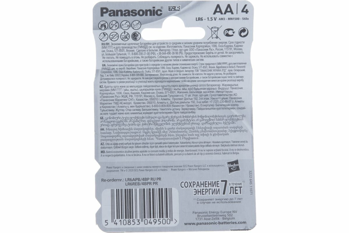 Батарейки Panasonic LR6REB/4BPRPR щелочные AA Power Rangers Alkiline power в блистере 4шт