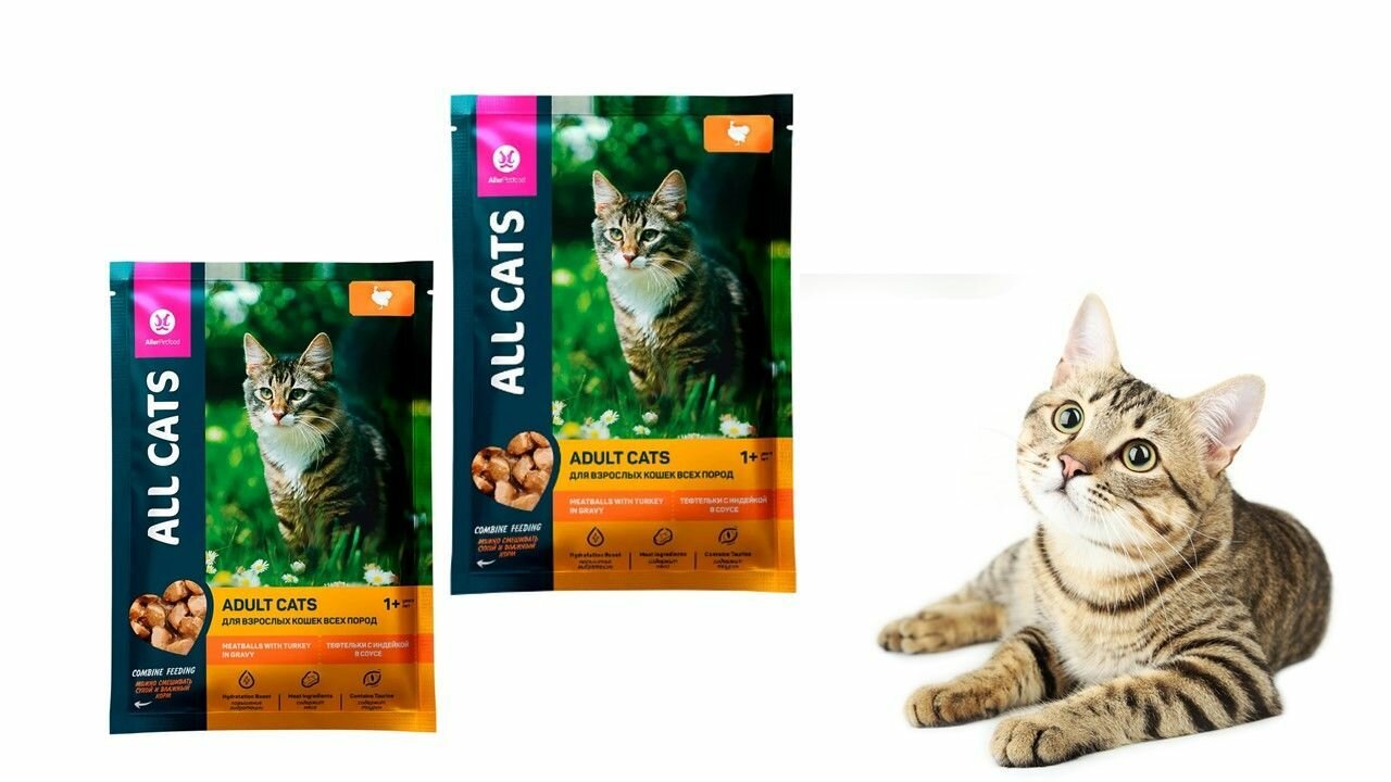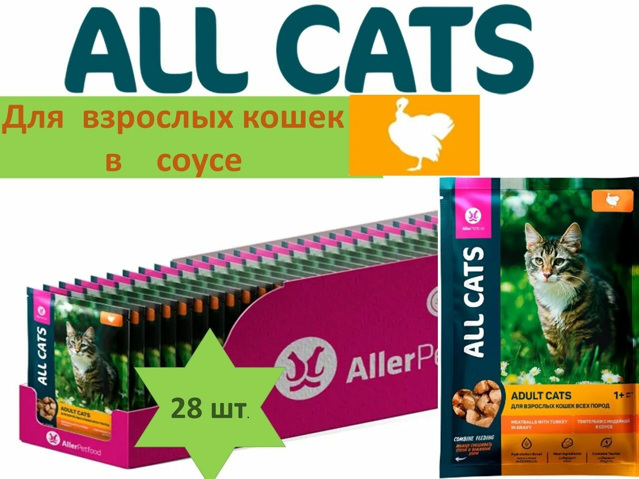 Корм для кошек Корм для кошек блок 28 штук*85 г ALL CATS индейка в соусе тефтельки/ Аллер Петфуд/Россия