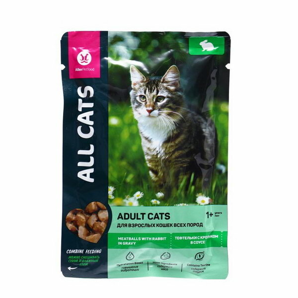 Корм для кошек Корм для кошек блок 28 штук*85 г ALL CATS тефтельки кролик в соусе/ Аллер Петфуд/Россия