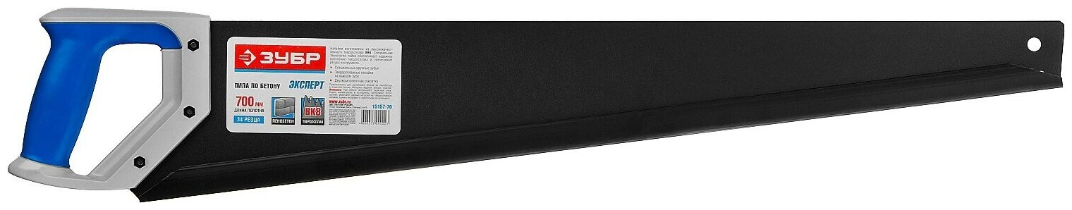 Лучшие цены. Ножовка по пенобетону ЗУБР эксперт Бетонорез 700 мм предназначена для распила блоков из пенобетона и ячеистого бетона. Специальный зуб с твердосплавными напайками увеличивает скорость выполнения работ и обеспечивает длительный срок службы. Двухкомпонентная рукоятка эргономичной формы из ударопрочной пластмассы и мягкого полимера. Магазины в вашем городе.