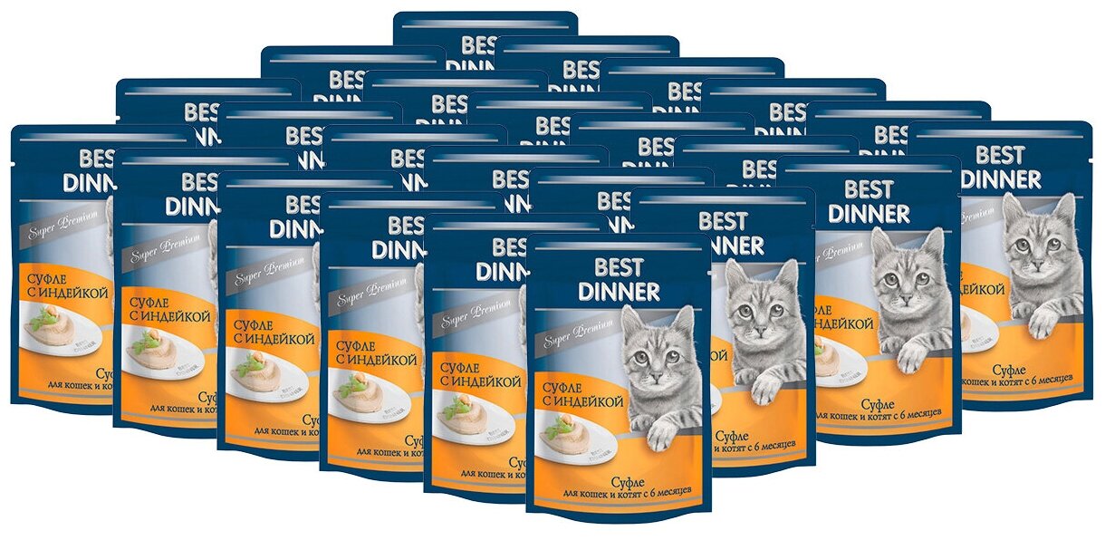 Влажный корм для кошек Best Dinner для кошек и котят с 6 месяца мясные деликатесы суфле с индейкой пауч, 85 г. 24 шт.