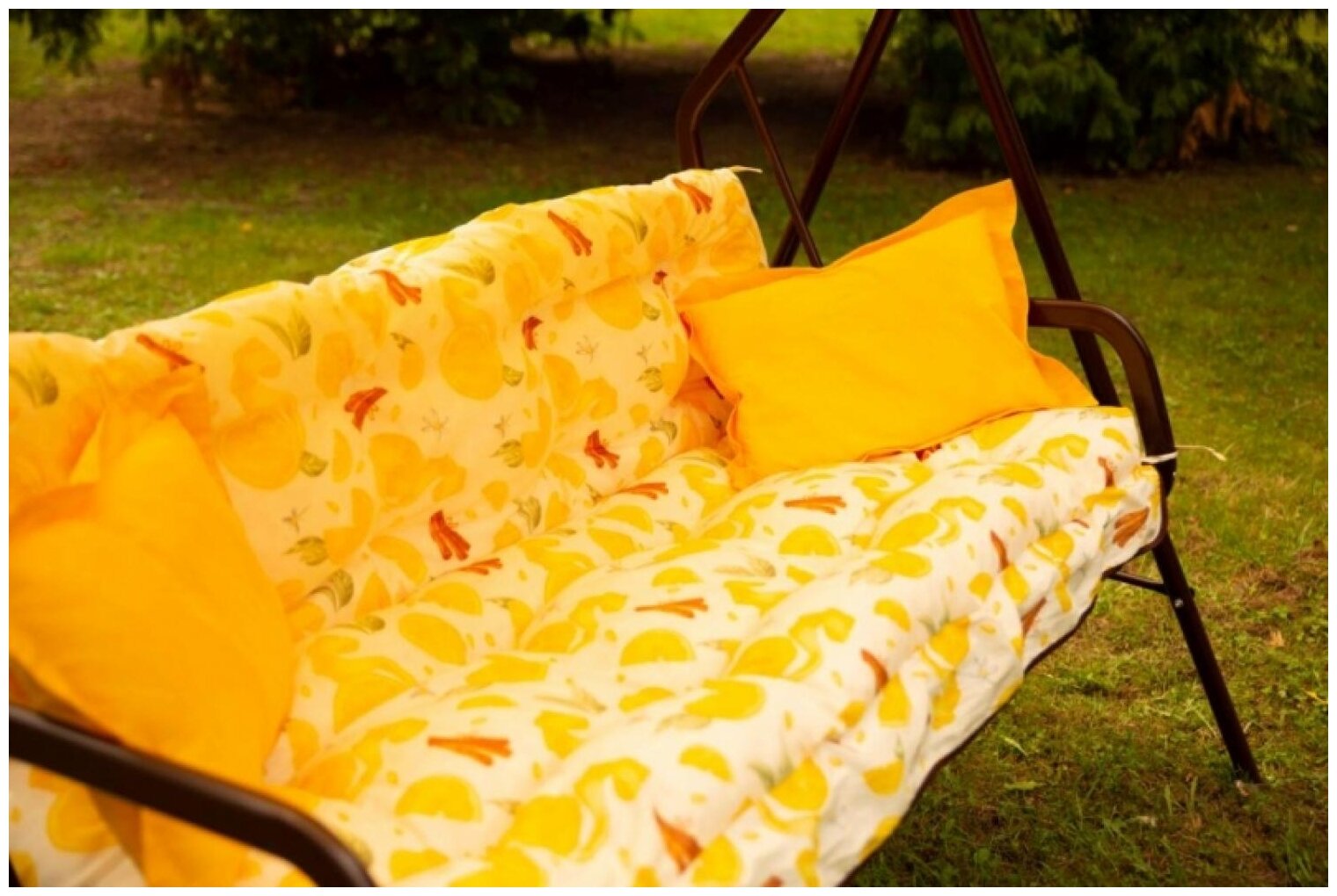 Качели садовые 3-х местные Ольса Бари каркас темно-коричневый, ткань белая с лимонами с1100