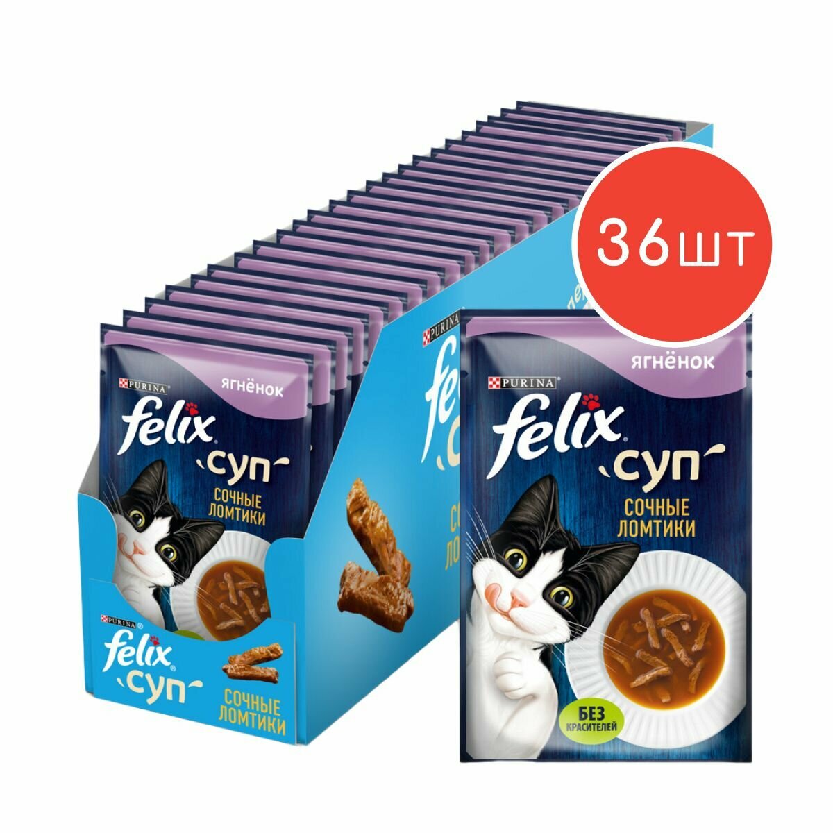 Корм для кошек Консервированный неполнорационный корм для взрослых кошек FELIX Суп, Сочные Ломтики, с ягненком 48г 36шт