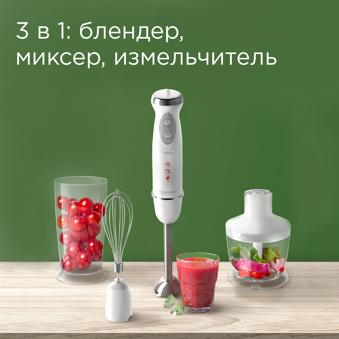 Блендер REDMOND RHB-2972, погружной, 1300 Вт, 0.5/0.6 л, режим "турбо", белый 6 265 ₽ Подробнее