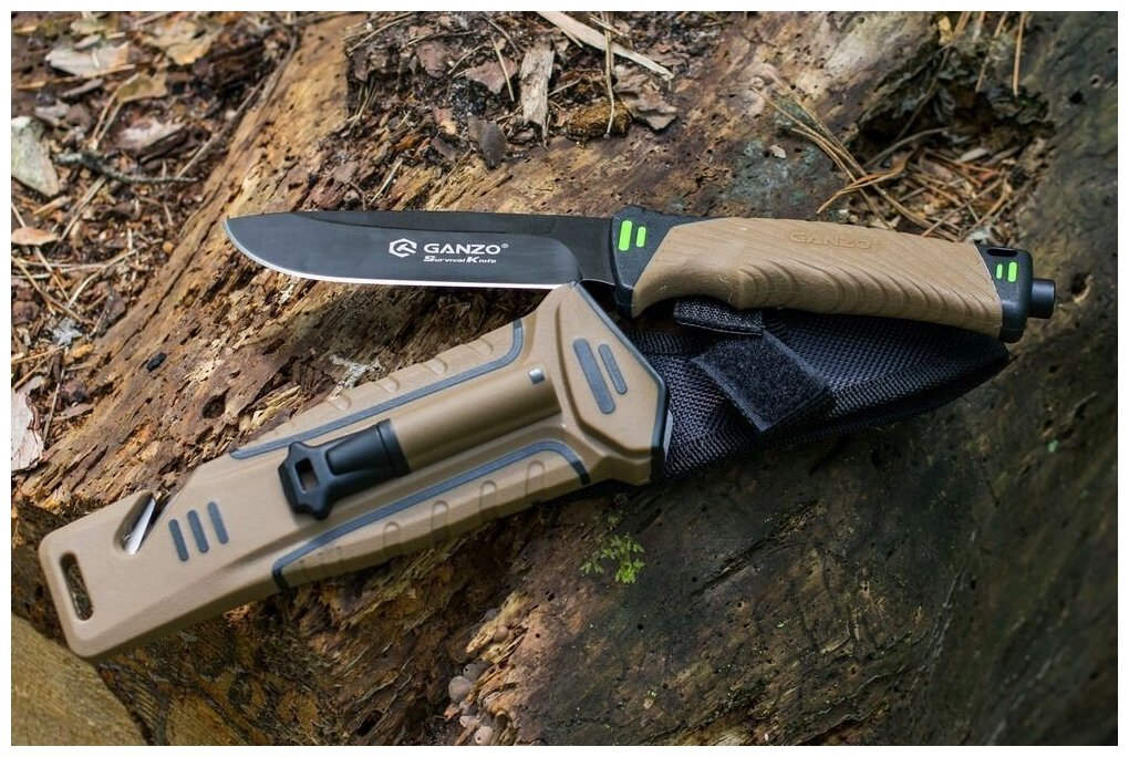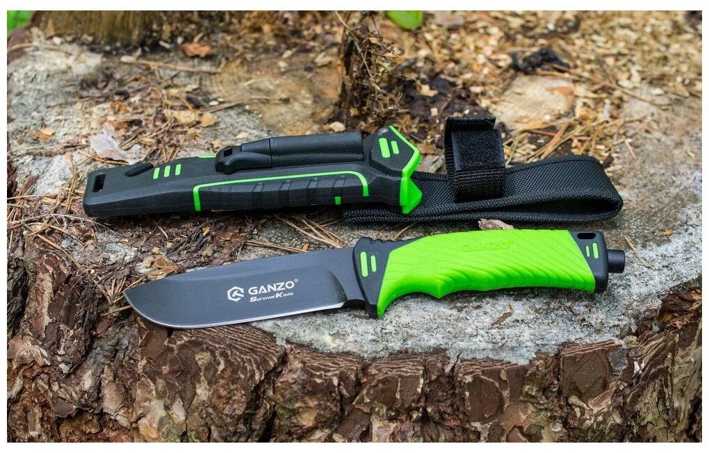 Нож выживания с огнивом Ganzo G8012, зелёный