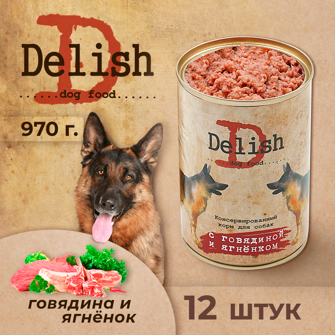 Корм для собак Delish говядина и ягнёнок консервы для собак 12 шт. по 970г