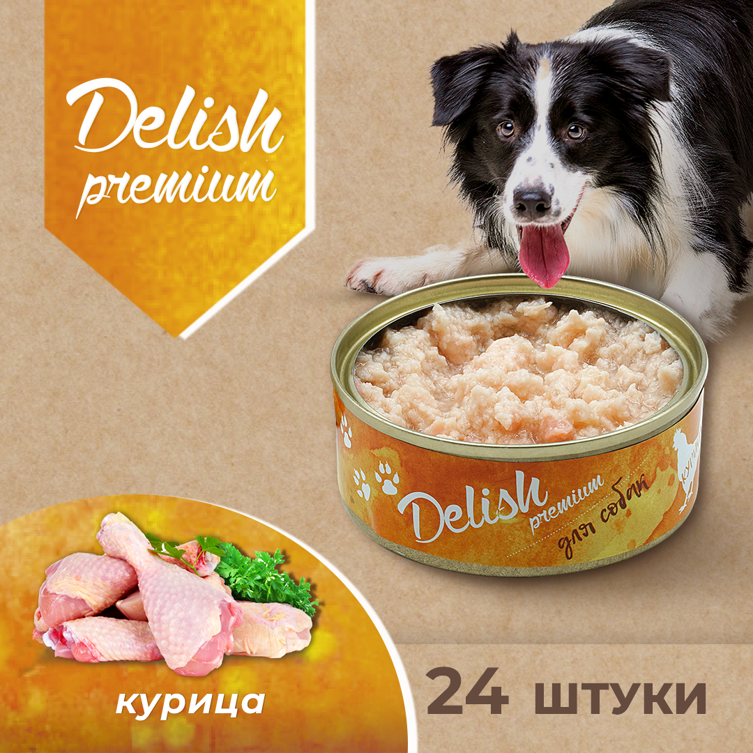 Корм для собак DELISH PREMIUM DOG для взрослых собак с курицей (100 гр х 24 шт)