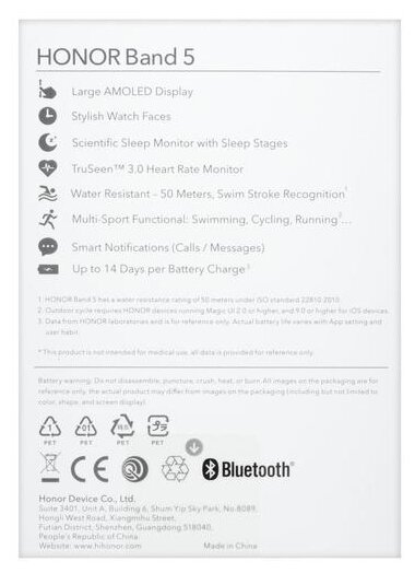 Носимый гаджет Фитнес-браслет Honor Band 5, черный