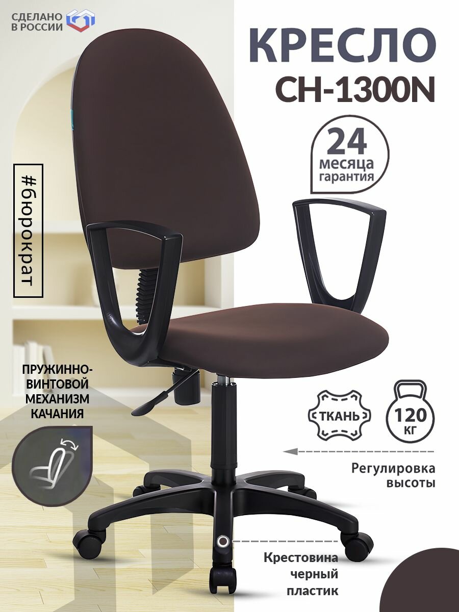 Кресло Бюрократ CH-1300N, на колесиках, ткань, коричневый [ch-1300n/3c08]