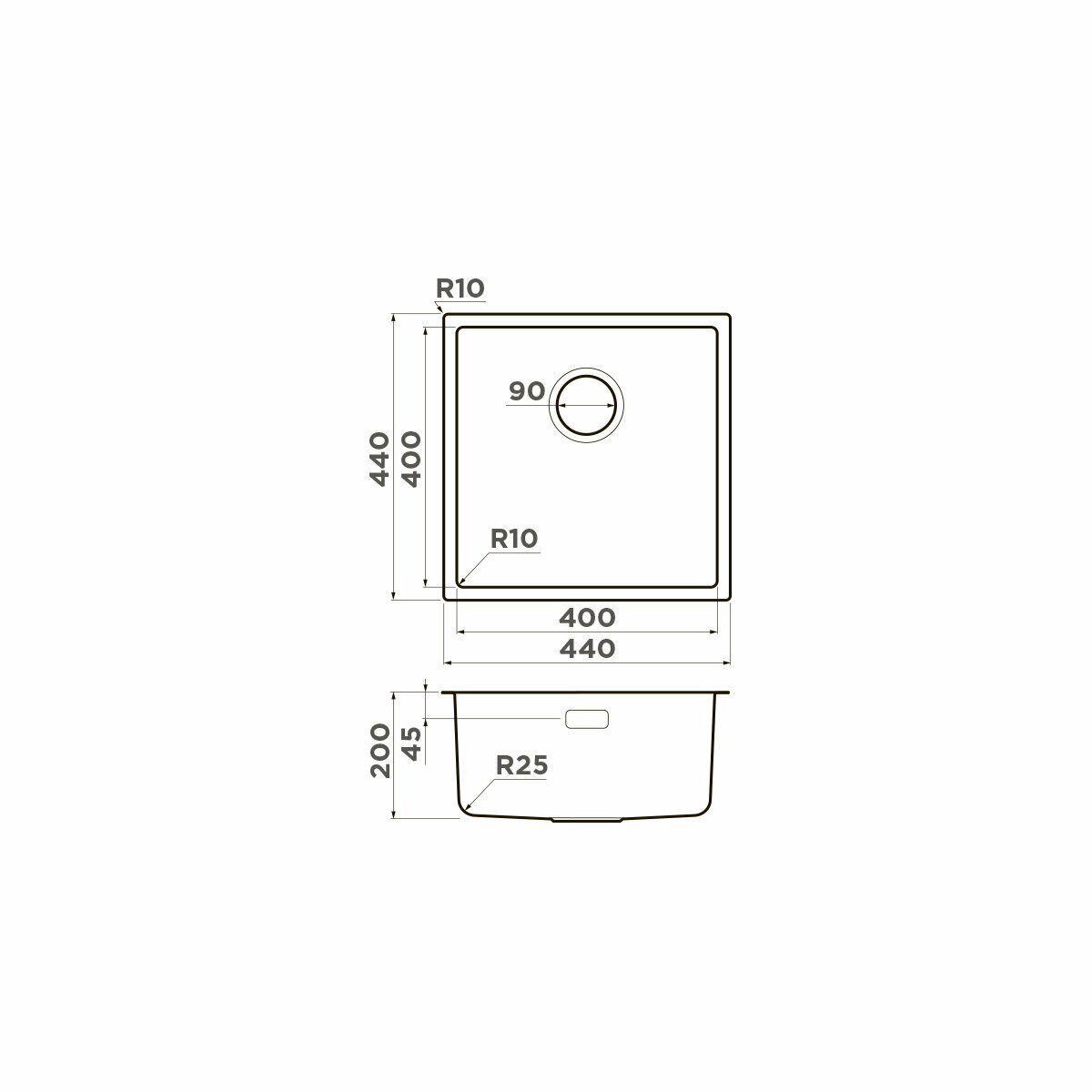 | Размеры врезного отверстия (под столешницу) | 400x400 мм (угловой радиус врезки 10 мм) |