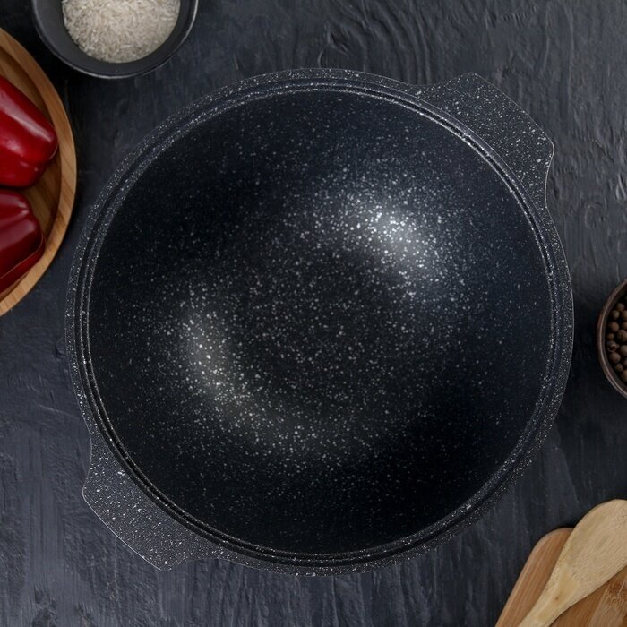 Казан антипригарный литой 3.5л для плова со стеклянной крышкой Темный мрамор ТМ KUKMARA