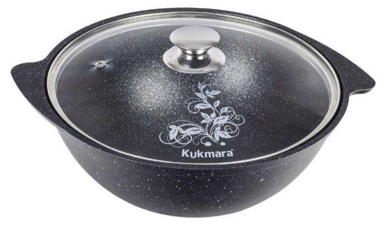 Казан Kukmara с антипригарным покрытием со стеклянной крышкой для плова Kukmara (темный мрамор) кмт37а, 3.5 л