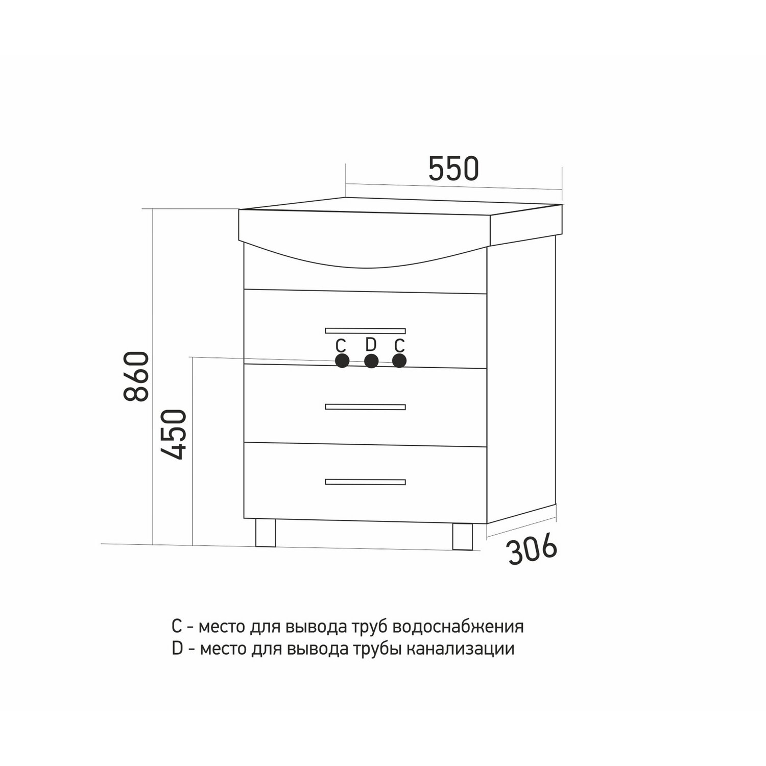 Тумба Mixline д/ванной "ДИАМАНТ-55" под ум.Элеганс-55 (ПВХ)