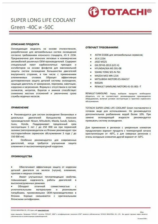 totachi super long life coolant green -40c (4l)_антифриз! готовый зеленый\ 2 049 ₽ Подробнее