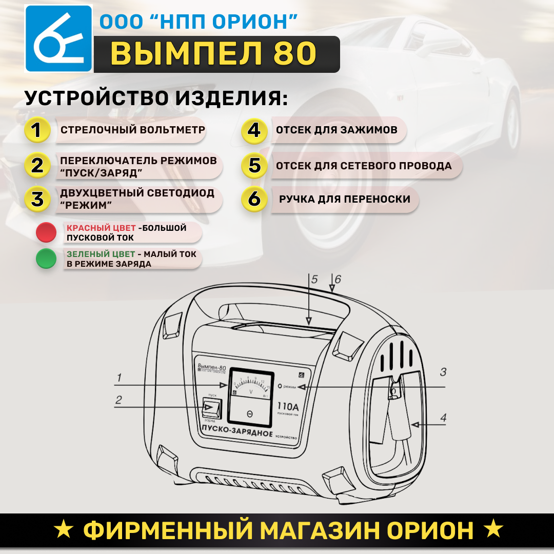 Нпп-орион 2026 2026_зарядное устройство! Вымпел-80 (пуско-заряд,110А/10А,12В,автомат)\ 1шт