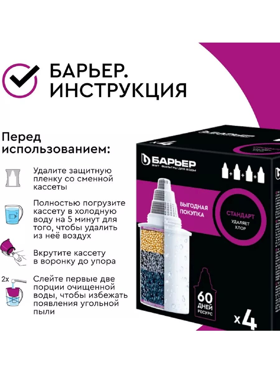 Комплект кассет для фильтров-кувшинов барьер Классик, 4 шт, удаляет хлор
